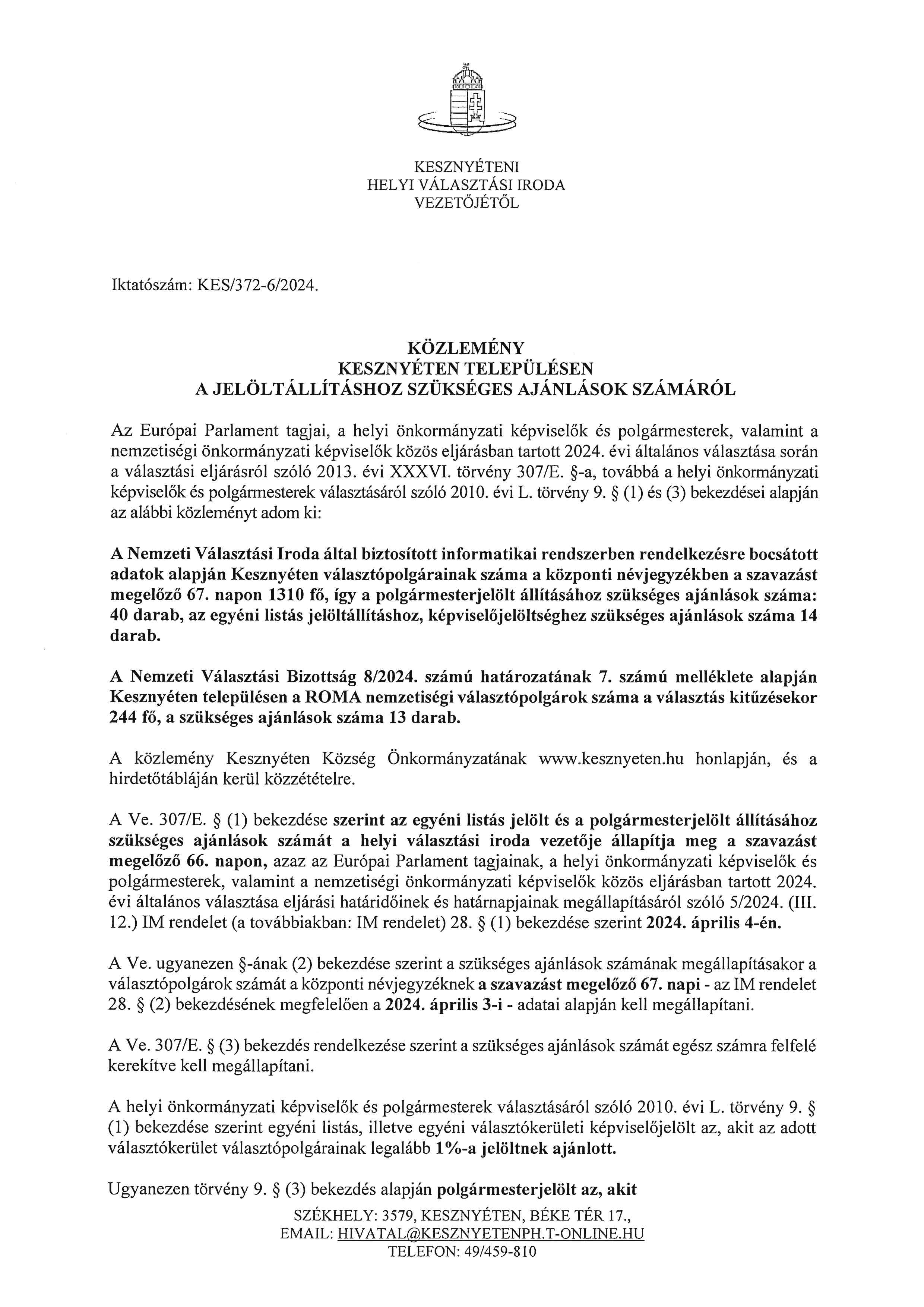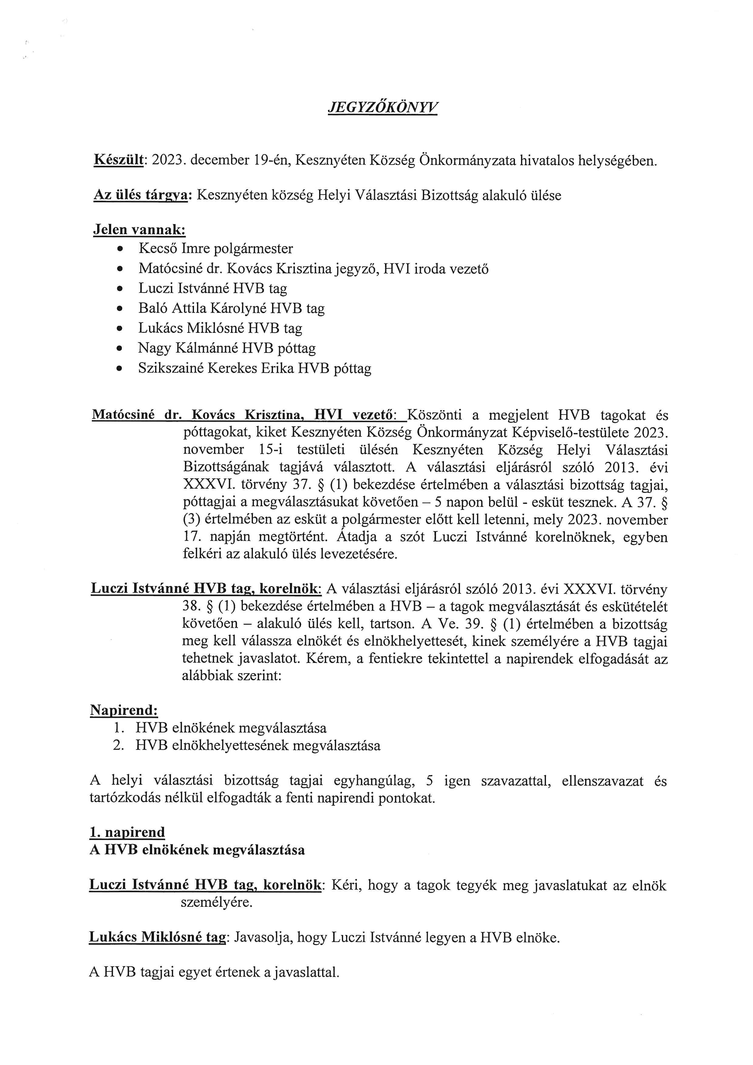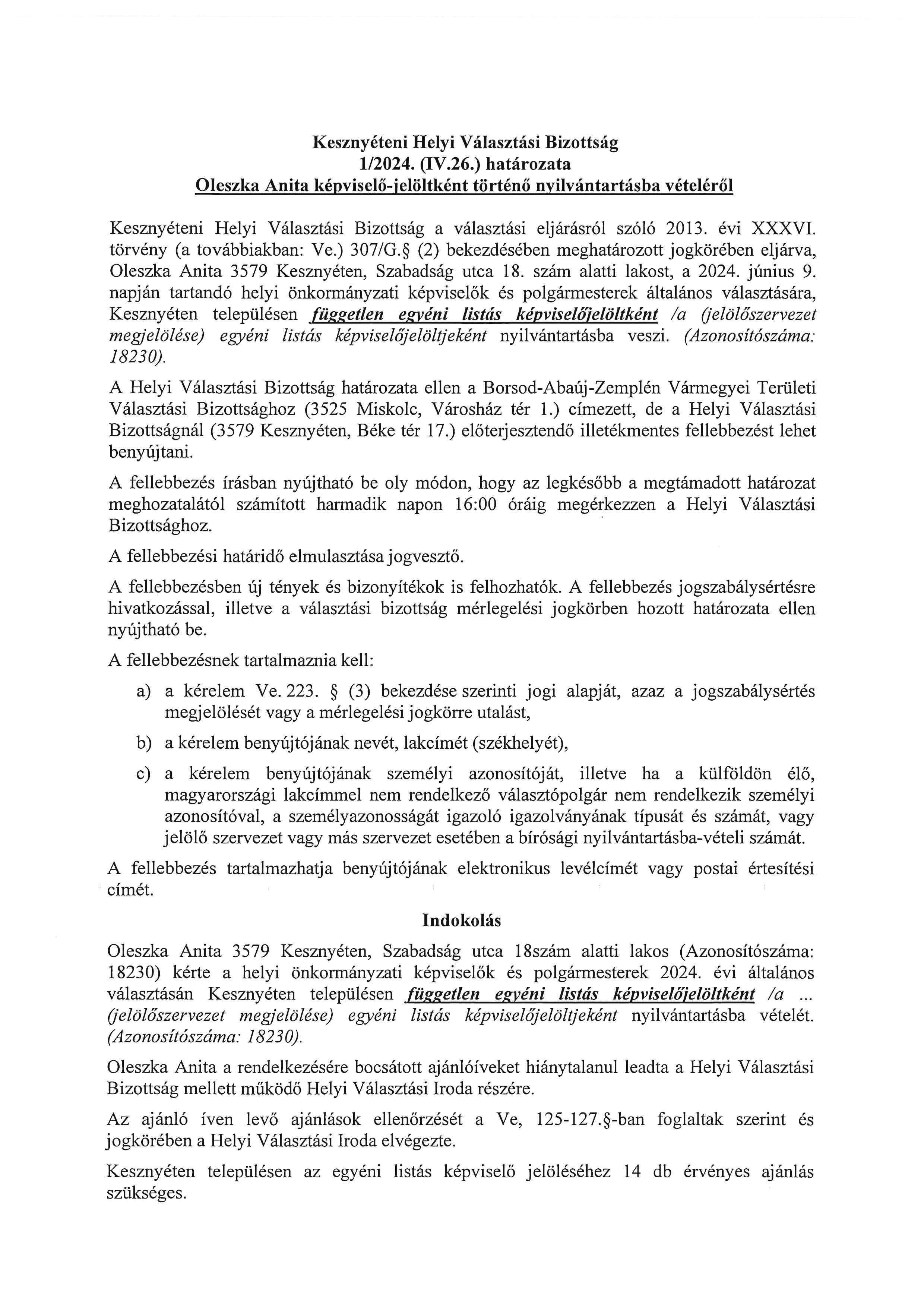 1.sz. HVB határozat képviselő-jelölt nyilvántartásba vételéről...