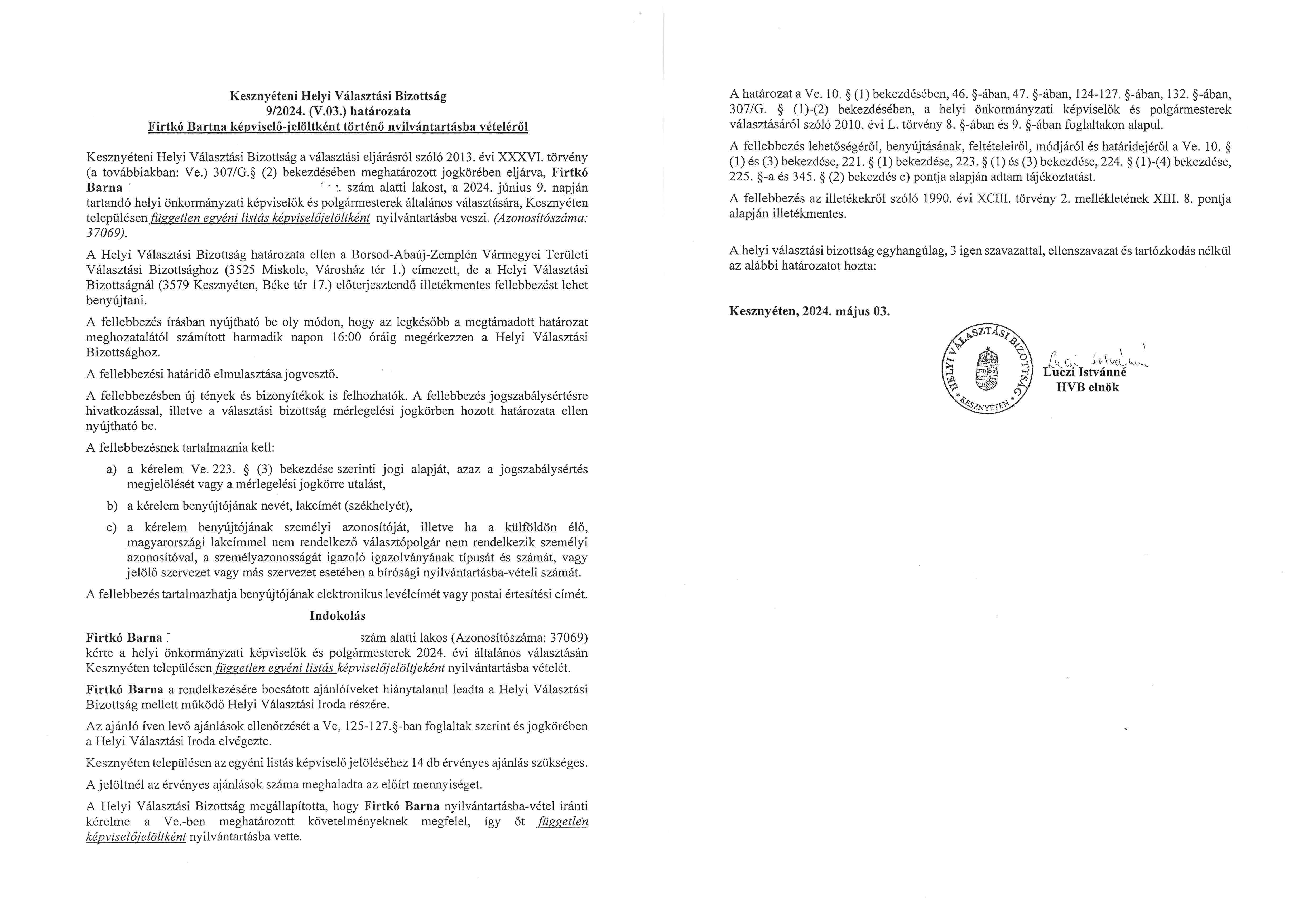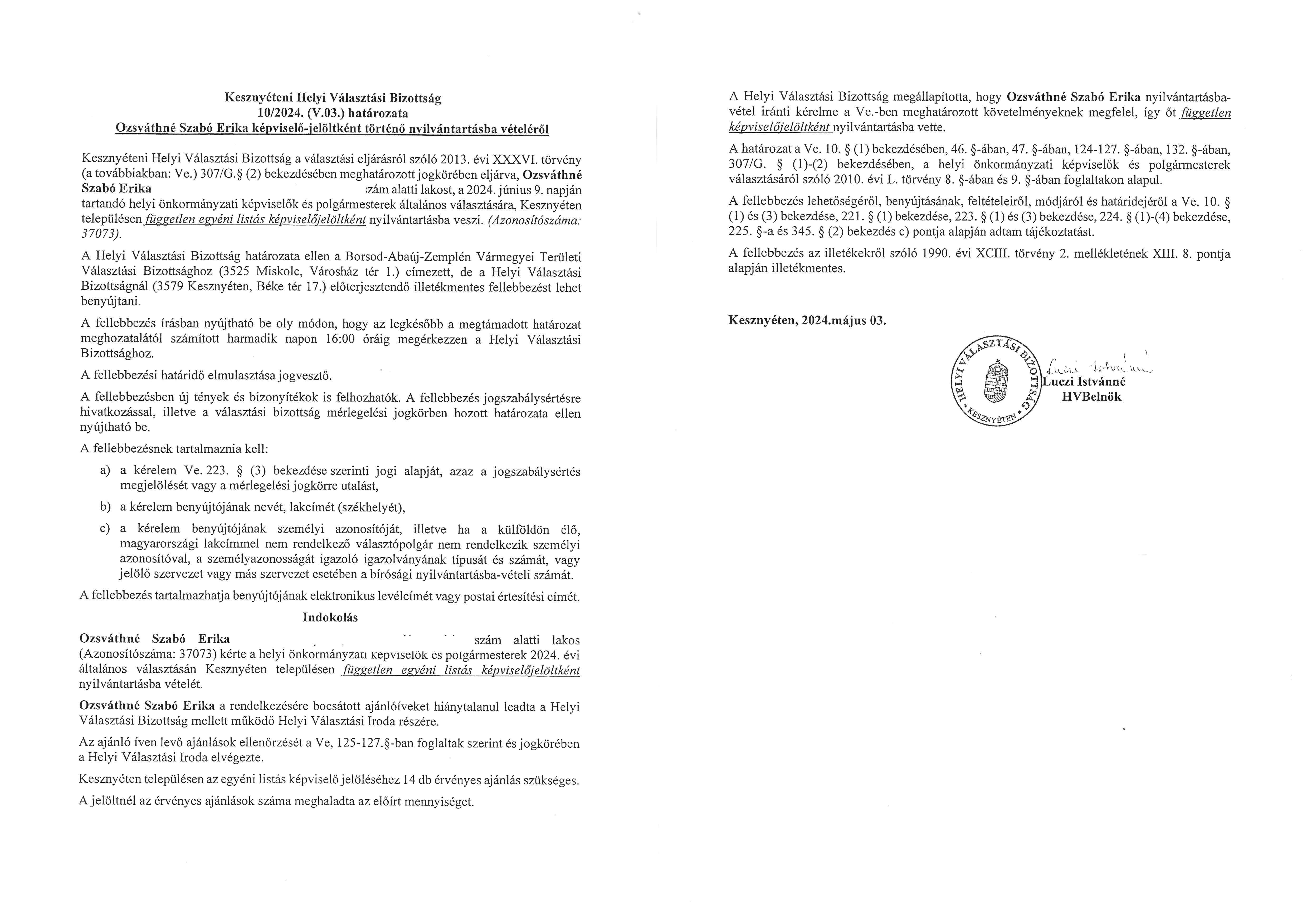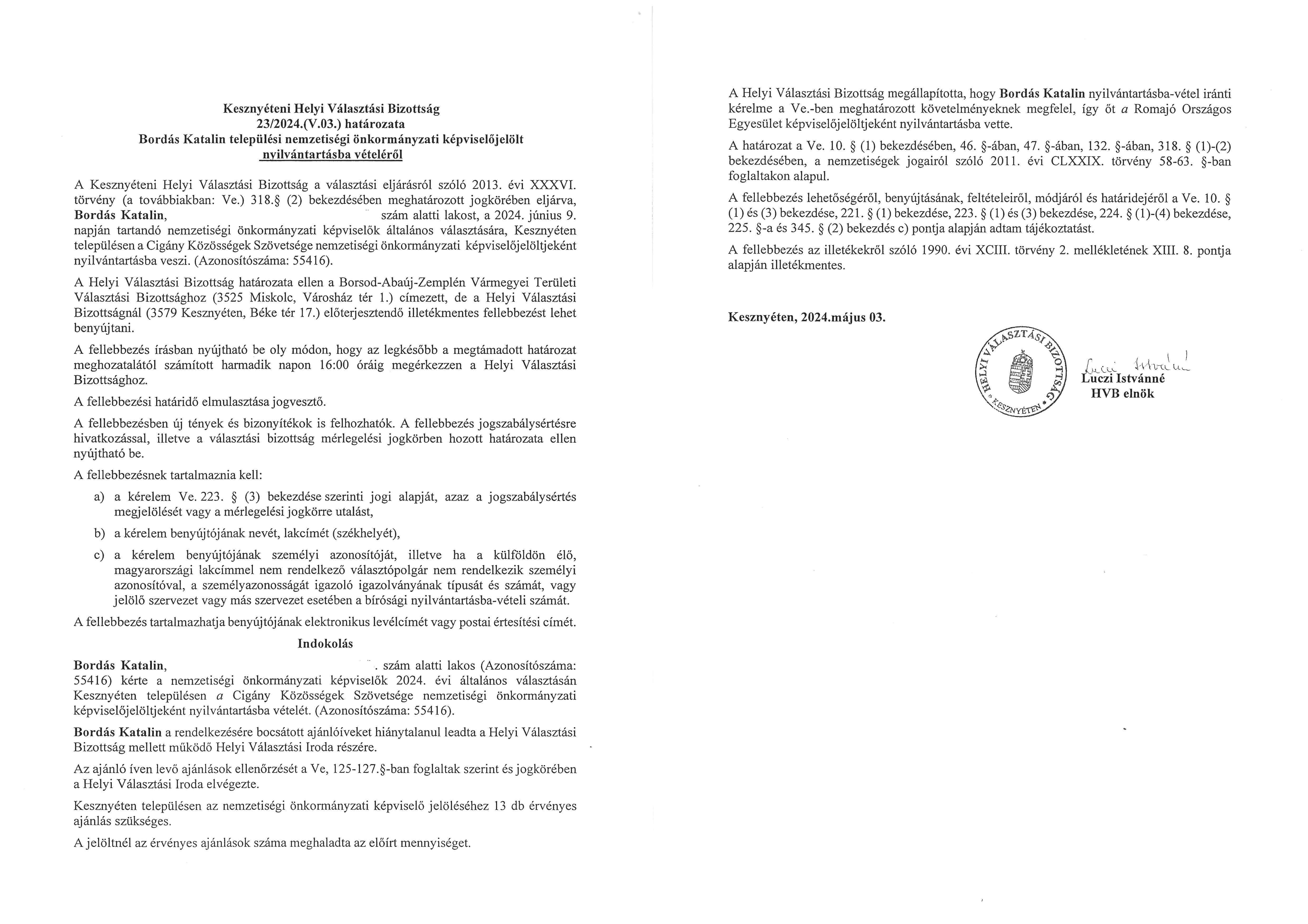Nemzetiségi képviselő-jelölt nyilvántartásba vétele....